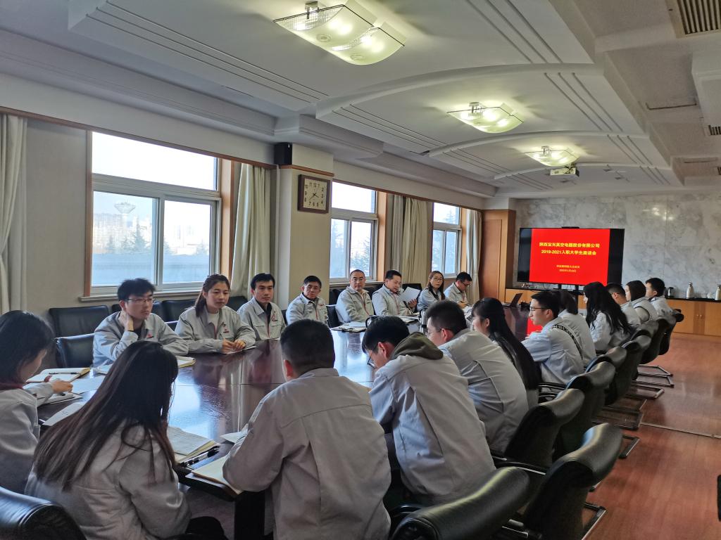 2022年1月12日下午,寶光股份組織召開(kāi)2019-2021入職大學(xué)生座談會(huì)。公司黨委書(shū)記、總經(jīng)理謝洪濤,副總經(jīng)理張軍,總工程師岳永學(xué)參加了座談。