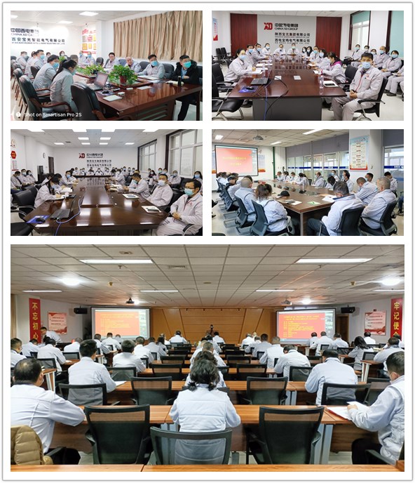 寶光集團(tuán)黨委書記、董事長(zhǎng)、總經(jīng)理余明星作工作報(bào)告,黨委副書記、紀(jì)委書記姚書勤主持會(huì)議,并傳達(dá)學(xué)習(xí)了1月22日西電集團(tuán)2022年工作會(huì)會(huì)議精神和要求,同時(shí)作黨史學(xué)習(xí)教育總結(jié)報(bào)告。副總經(jīng)理馮仁斌、武克耀,總會(huì)計(jì)師馬亮分別宣讀了寶光集團(tuán)、西電寶雞電氣和寶光股份表彰決定。