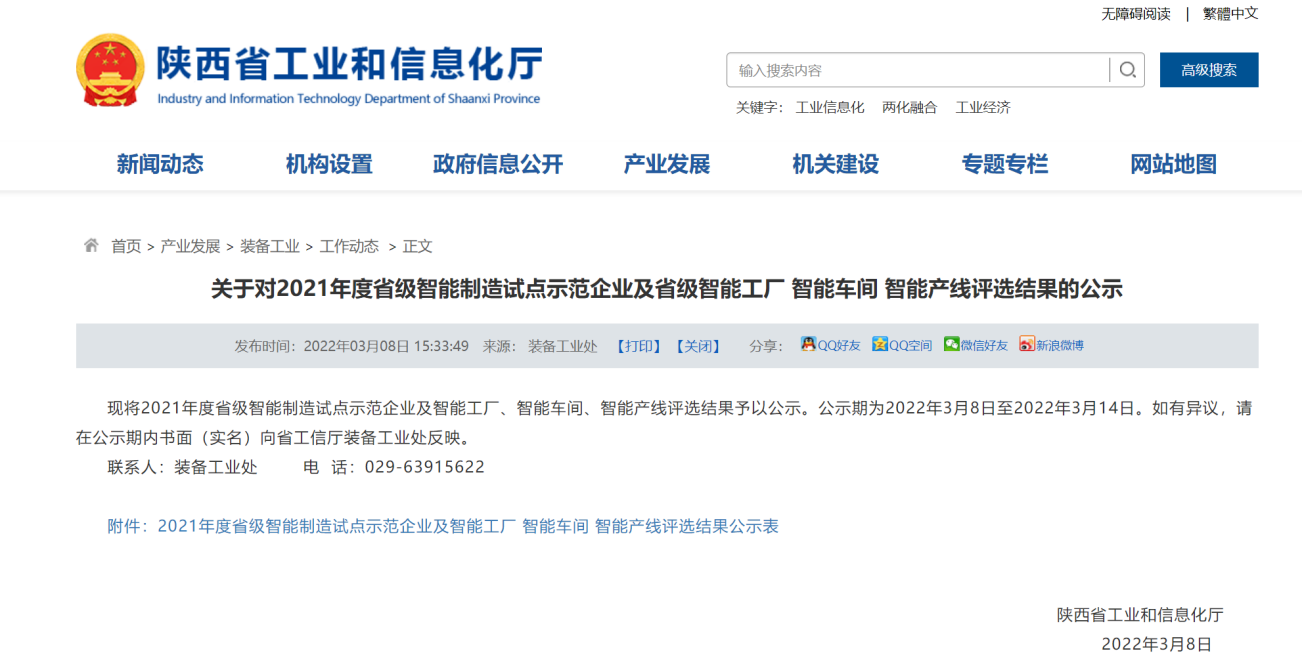 3月14日,陜西省工信廳裝備工業(yè)發(fā)布2021年度省級(jí)智能制造試點(diǎn)示范企業(yè)及省級(jí)智能工廠名單,寶光股份獲評(píng)“2021年度省級(jí)智能工廠”。