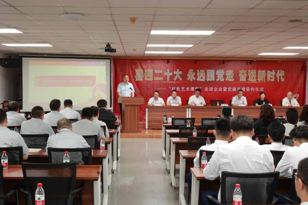 謝洪濤對(duì)各位領(lǐng)導(dǎo)、嘉賓的到來表示誠摯歡迎,他指出,學(xué)校在人才培養(yǎng)、經(jīng)營(yíng)管理、技術(shù)研究等方面給公司提供了無私支持,此次“紅色藝術(shù)課堂”進(jìn)企業(yè)進(jìn)一步激發(fā)了干部職工崇高的愛黨愛國情懷,雙方凝聚共識(shí)、結(jié)對(duì)共建、簽約揭牌,將開啟校企黨建聯(lián)建共建新紀(jì)元,掀開校企黨建結(jié)對(duì)共建、資源共享、優(yōu)勢(shì)互補(bǔ)、共同提高的新篇章。為此,他提出三點(diǎn)希望:一是要充分認(rèn)識(shí)結(jié)對(duì)共建的重要意義,提高站位,增強(qiáng)責(zé)任感、緊迫感和使命感,圍繞校企高質(zhì)量發(fā)展,強(qiáng)強(qiáng)聯(lián)合,共同提高,努力建設(shè)校企黨建聯(lián)建共建的窗口和示范基地;二是要充分發(fā)揮結(jié)對(duì)共建的資源優(yōu)勢(shì),通過多種方式借鑒好方法好經(jīng)驗(yàn),實(shí)現(xiàn)黨建與生產(chǎn)經(jīng)營(yíng)、黨建與學(xué)校發(fā)展工作良性融合發(fā)展,實(shí)現(xiàn)雙方共贏;三是要充分彰顯結(jié)對(duì)共建的時(shí)代價(jià)值,持之以恒推進(jìn)落實(shí)黨建共建基地工作規(guī)劃,營(yíng)造濃厚的共建工作氛圍,按工作計(jì)劃扎實(shí)有效開展各項(xiàng)聯(lián)建共建活動(dòng)。