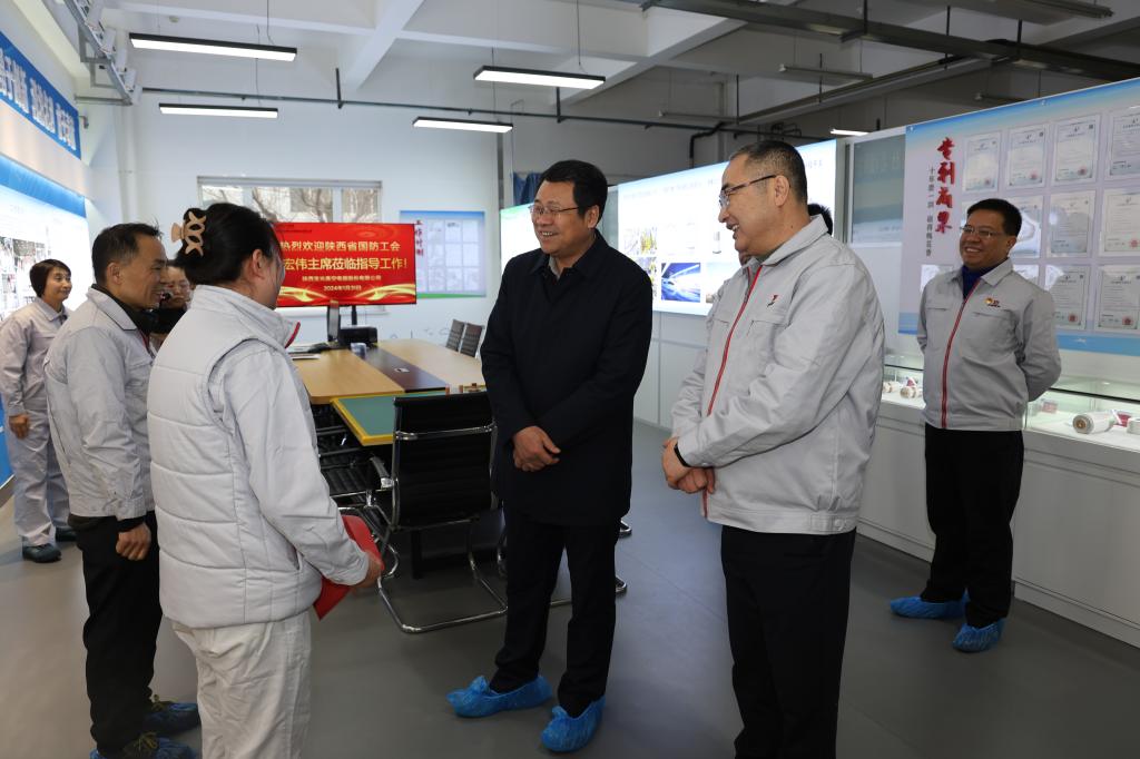 1月31日下午,陜西省國(guó)防工會(huì)主席馬宏偉、綜合部部長(zhǎng)張鵬一行到寶光集團(tuán)調(diào)研,并慰問(wèn)全國(guó)勞模及困難職工。寶光集團(tuán)黨委書記、董事長(zhǎng)、總經(jīng)理謝洪濤,黨委副書記、紀(jì)委書記、工會(huì)主席姚書勤陪同調(diào)研慰問(wèn)。