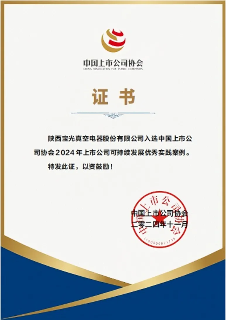 11月26日,中國(guó)上市公司協(xié)會(huì)發(fā)布“2024年上市公司可持續(xù)發(fā)展最佳及優(yōu)秀實(shí)踐案例”名單,寶光股份憑借在推動(dòng)生態(tài)文明建設(shè)、履行社會(huì)責(zé)任、完善可持續(xù)治理體系等方面的優(yōu)秀做法,從596篇投稿案例中脫穎而出,成功入選“2024年上市公司可持續(xù)發(fā)展優(yōu)秀實(shí)踐案例名單”。這是公司繼2023年入選中國(guó)上市公司協(xié)會(huì)“上市公司ESG優(yōu)秀實(shí)踐案例”后,在可持續(xù)發(fā)展方面獲取的又一殊榮。這不僅是對(duì)寶光股份在可持續(xù)發(fā)展領(lǐng)域所做努力的認(rèn)可,也是對(duì)未來(lái)發(fā)展?jié)摿Φ目隙ā?/span>
