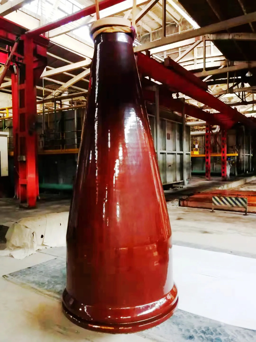 本次研制的2000kV變壓器電容套管將應用于目前世界上電壓等級最高的試驗變壓器,對1100kV特高壓電氣設備產品進行各項嚴格的電氣性能試驗。這種試驗方法屬于國內首次,相比常規(guī)產品,試驗要求及質量控制更加苛刻。同時,該產品為超大尺寸、薄壁、錐度大、易變形的炮彈式結構,僅毛坯重量就接近8噸,整個制造過程采用濕法產線生產,因突破了很多設備的極限,成型極其困難。在毛坯擠制、轉運、陰干、修坯、干燥、上釉、燒成、切割研磨各工序,均存在不同程度困難與挑戰(zhàn)。