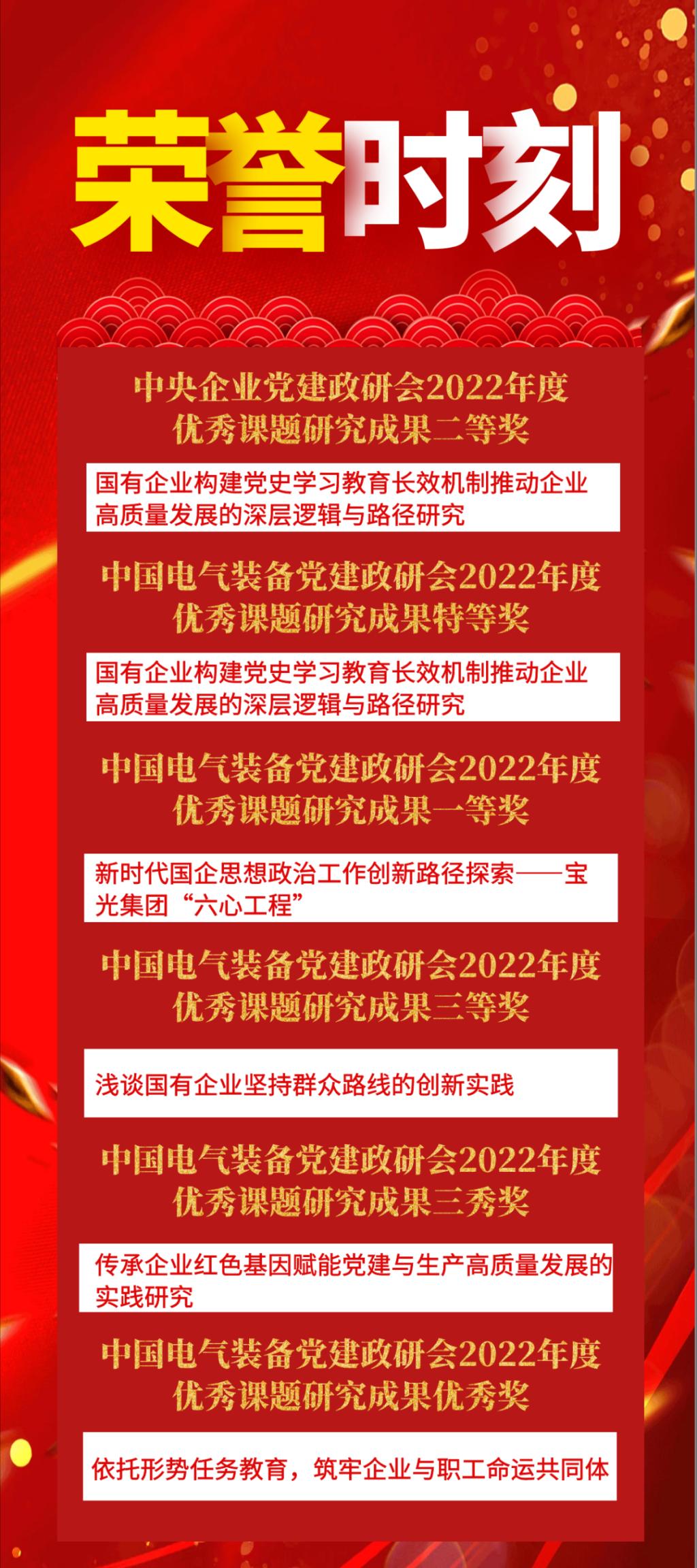 2022年,中國西電集團堅持以習近平新時代中國特色社會主義思想為指導,深入學習宣傳貫徹黨的二十大精神,按照中國電氣裝備黨建政研會工作部署,立足企業(yè)實際,堅持問題導向,優(yōu)化政研選題,聚焦研究重點,積極參加中國電氣裝備及以上政研會課題立項,切實抓好央企黨建政研會和中國機械政研會課題研究,形成8項具有應用性和指導性的研究成果。同時,認真落實中國電氣裝備黨建政研會工作要求,積極推進公司2022年課題研究工作,確定3個重點研究方向,下發(fā)參考選題25個,搭建5個課題組,審定立項課題89個,形成A類成果26個。2022年,中國西電集團榮獲“機械行業(yè)政治思想文化建設貢獻榜2021年度分榜上榜單位”與“2021年度機械行業(yè)機械紅色故事宣傳推廣貢獻單位”等榮譽,中國西電集團及所屬3家企業(yè)政研成果入選“2021年度機械行業(yè)政治思想文化建設特色突出案例”。