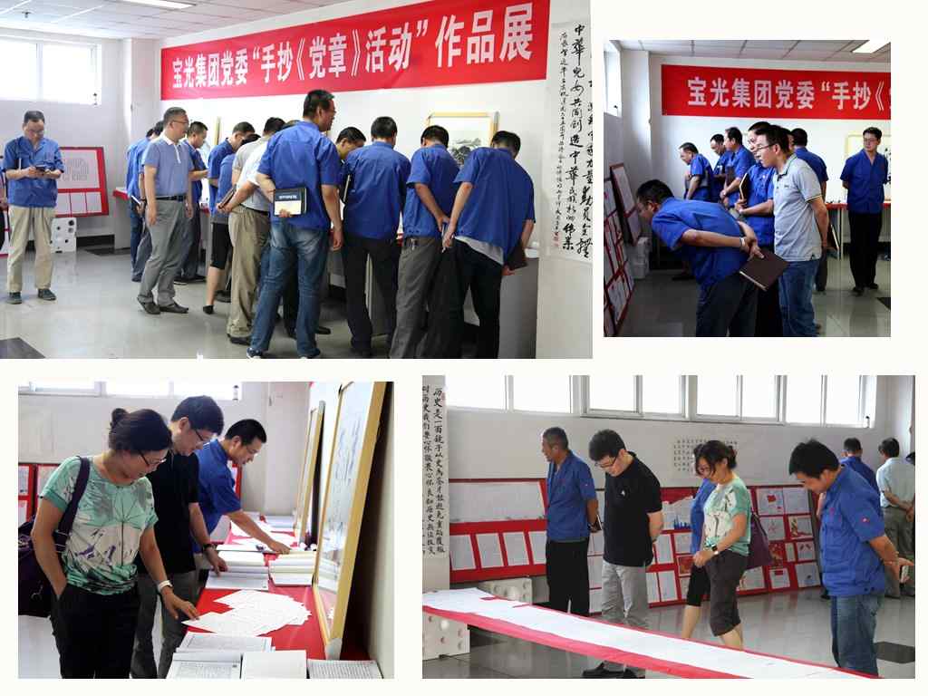 7月12日,寶光黨委組織的“手抄《黨章》活動”作品展在科技大樓一樓西廳正式拉開了帷幕。當(dāng)天下午,公司領(lǐng)導(dǎo)李軍望、岳永學(xué)、張軍、胡唯、袁軍為、黨向東及各單位相關(guān)領(lǐng)導(dǎo)30余人參觀了展覽的作品。