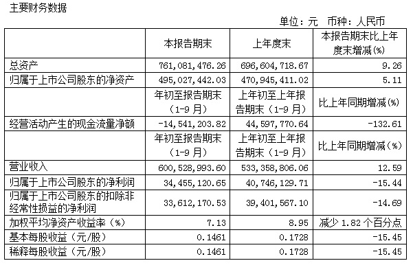 寶光股份2017年3季度主要財(cái)務(wù)指標(biāo)