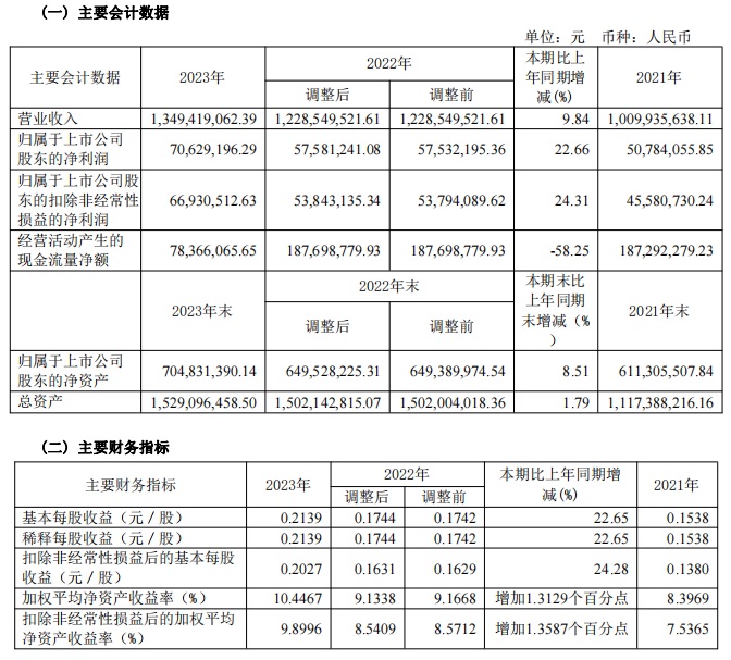 寶光股份2023年度主要財(cái)務(wù)指標(biāo)